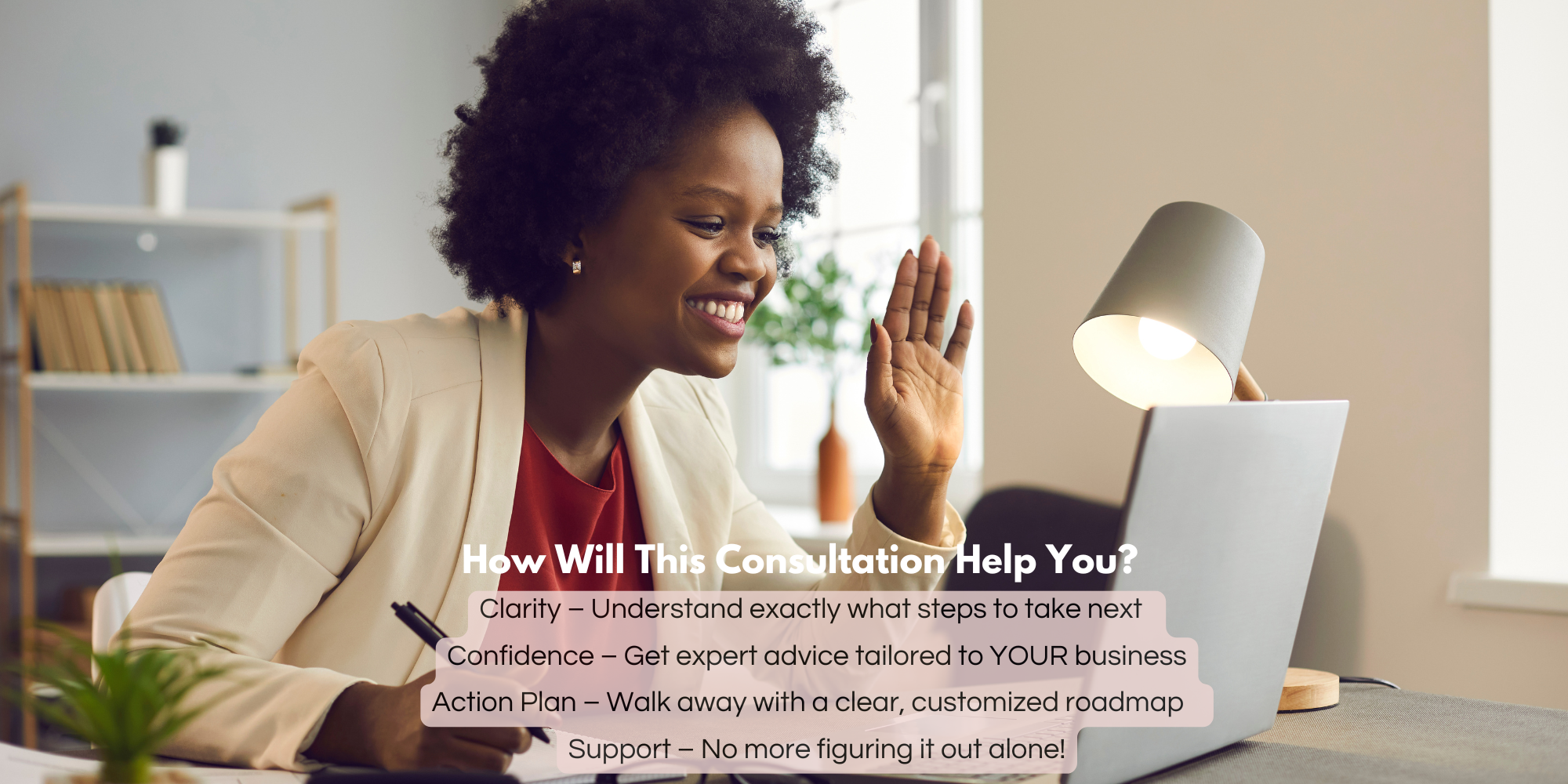 The consultation is designed to help troubleshoot any challenges you may be facing with launching, setting up, or operating your business. Whether you're struggling with business structure, organization, financial planning, or workflow optimization, I provide expert guidance to help you move forward with confidence.